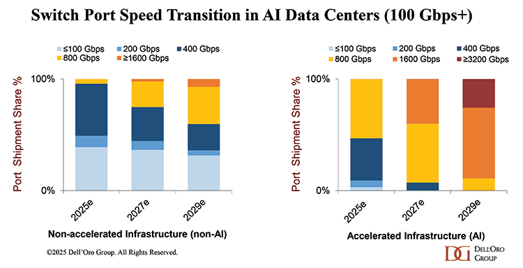 Another major factor is the refresh cadence. AI back-end networks are refreshed roughly every two years or less, compared to about five years in traditional front-end enterprise environments. As a result, speed transitions in AI data centers are happening at almost twice the pace of non-accelerated infrastructure.