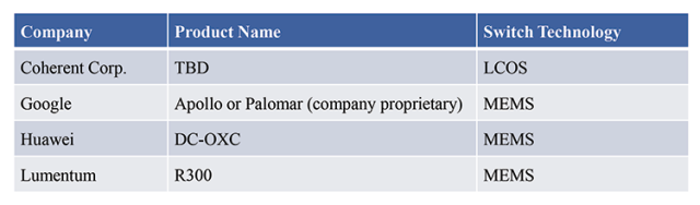 To address the specific needs for AI data centers, companies have launched new OCS products. The following is a list of the products available in the market: